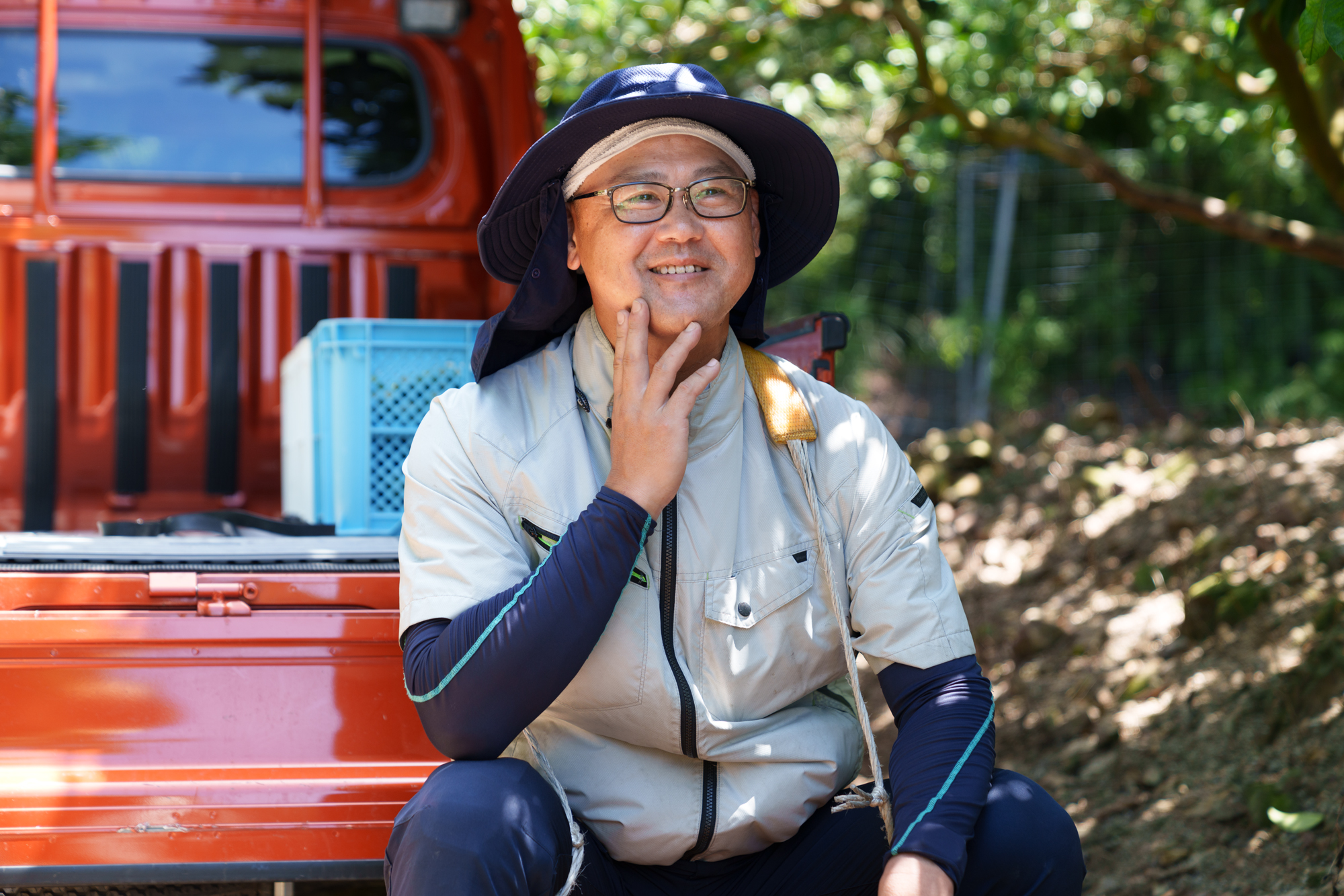 最後に、「みかん農家になってよかったですか?」と尋ねると、こんな話をしてくれた。 「今日も暑くて、収穫作業は汗だく。 でも、脚立に登って、木の上に顔を出した瞬間、ふっと風が吹いたんですよ。自然って粋なことするなぁと。そうして、ふと空を見上げたら、青空が広がっていて。ああ、この人生にしてよかったなって、改めて思います」