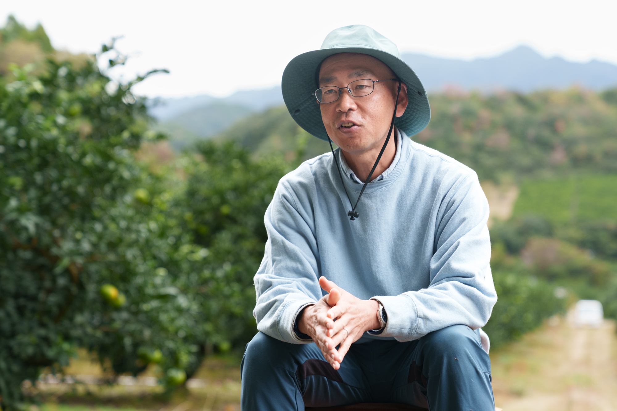 「脚立で木に登って、顔を出した瞬間に見える景色がすごいんです。山と空とみかん畑が一気に広がって、“あぁ、幸せだな” って」