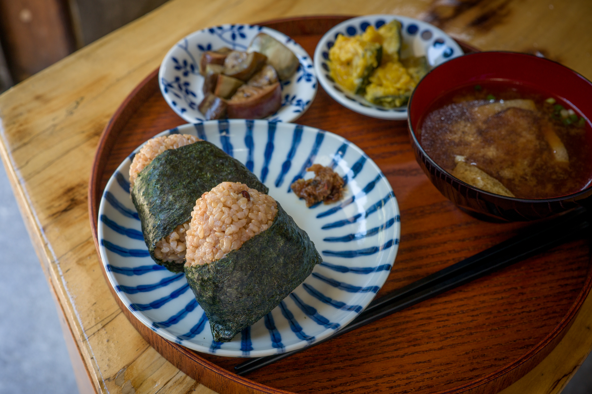 You’ll take a lunch break with a view of the terraced rice fields. The menu is a meal that’s a great choice for vegetarians, featuring Karaage (Japanese-style fried chicken) made from soy sheets and Koso-Genmai (enzyme-activated brown rice) Onigiri (rice balls) with a cup of local Assam tea.