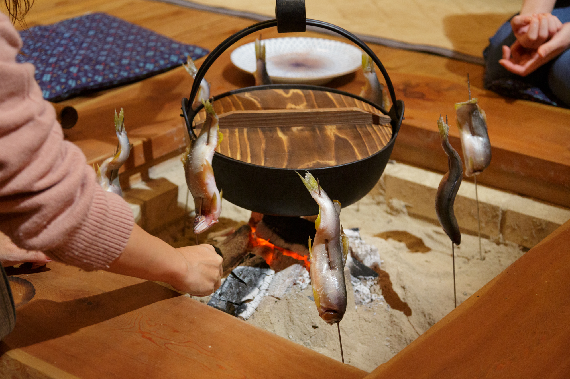 In the evening, you’ll gather around the Irori hearth for a special dinner. Enjoy delicious local ingredients from Kumano’s sea, mountains, and rivers, along with hot, perfectly cooked rice infused with the delicate aroma of firewood.